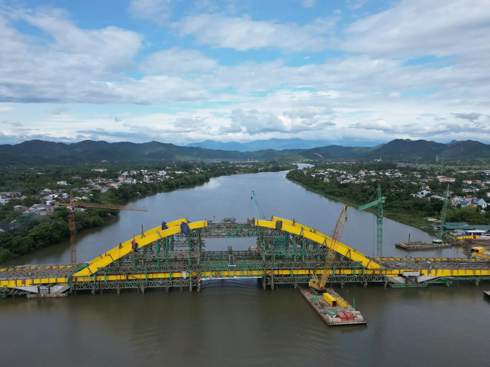 Cầu Nguyễn Hoàng kết cấu bêtông cốt thép, dài 380 m với 5 nhịp dầm, rộng 43 m với 6 làn ôtô, 2 làn xe môtô rộng 3,5 m, làn