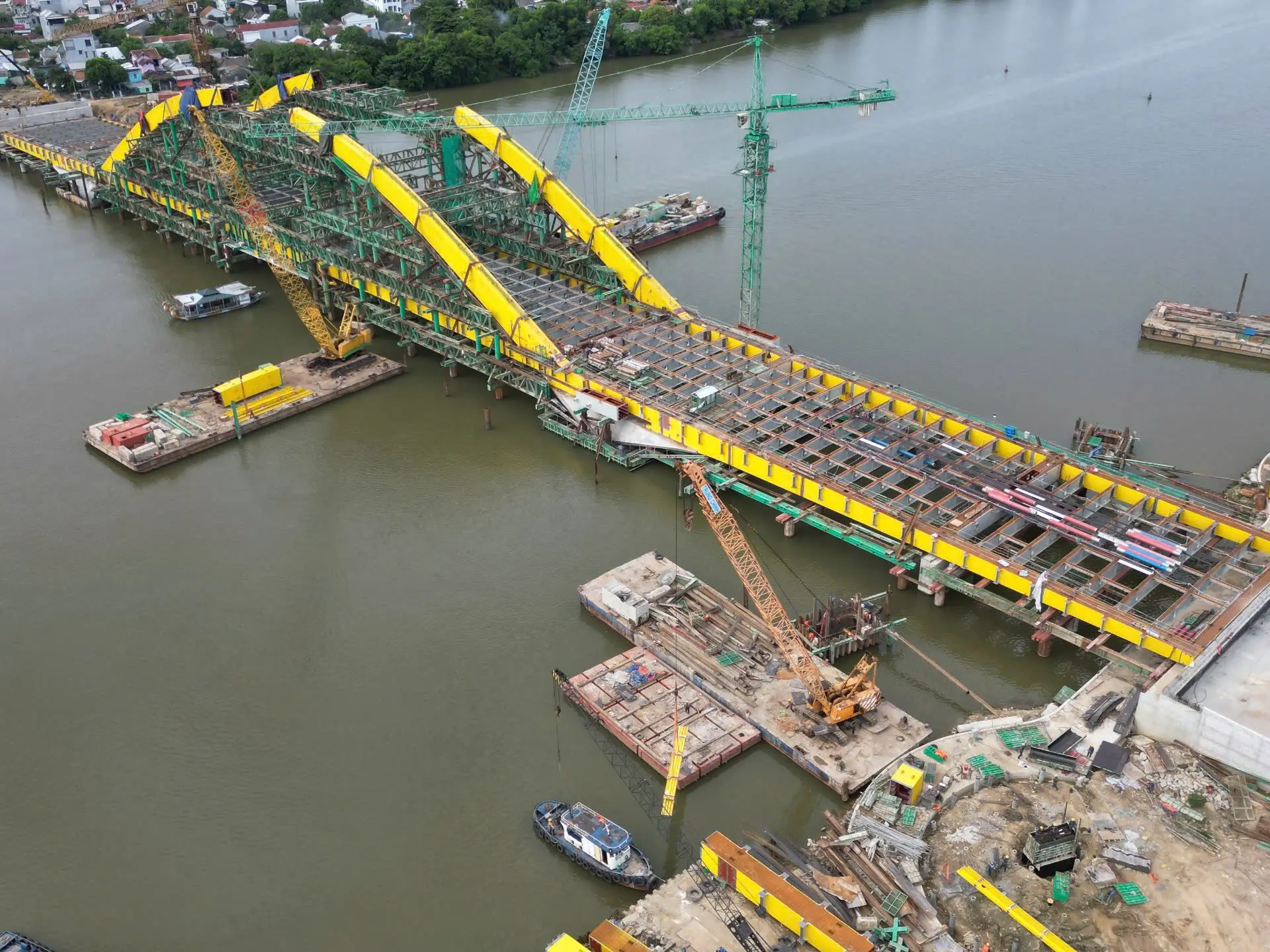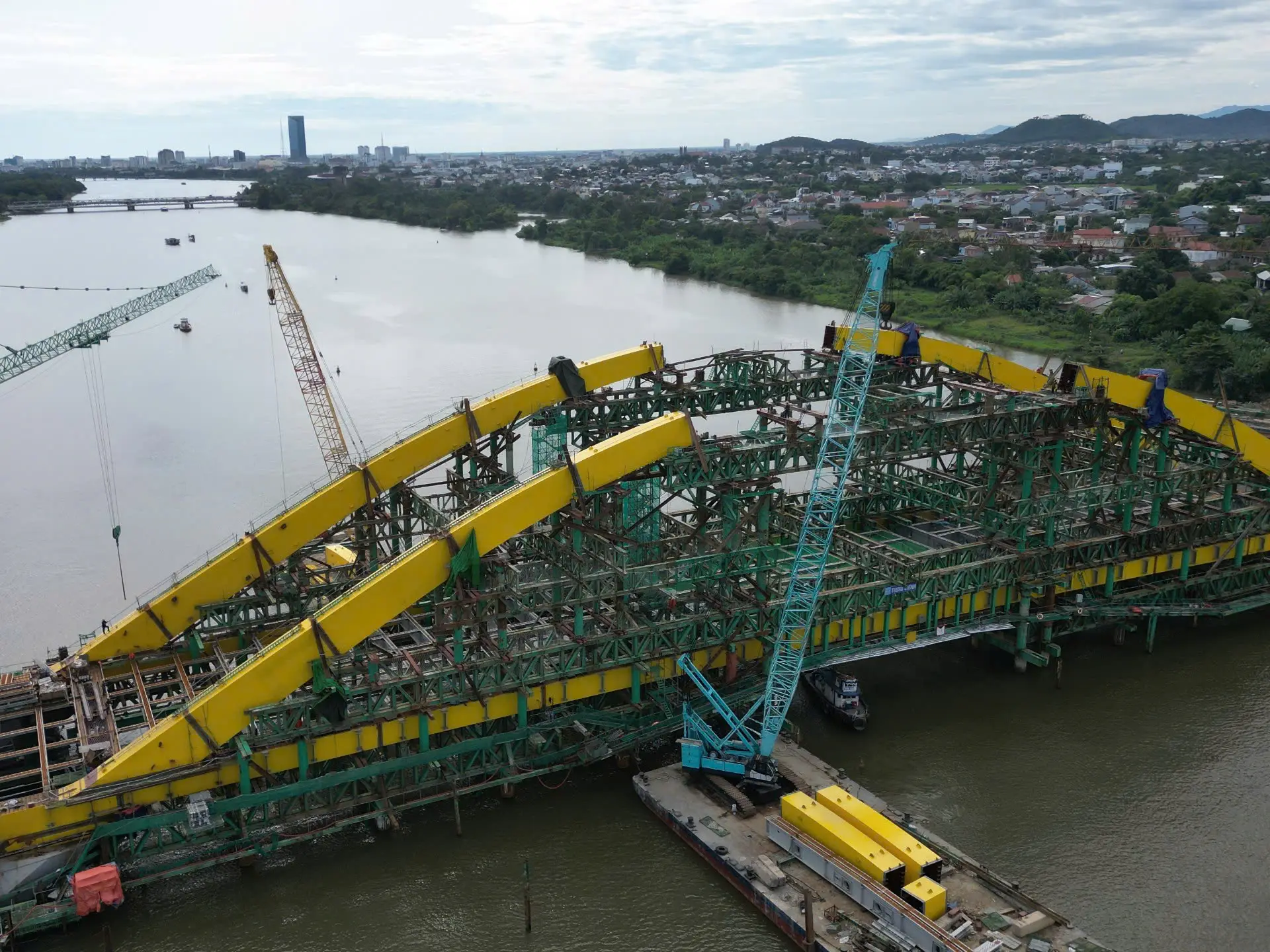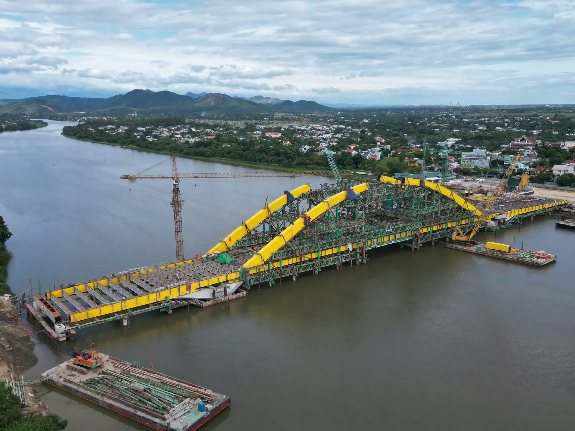 Cầu Nguyễn Hoàng kết cấu bêtông cốt thép, dài 380 m với 5 nhịp dầm, rộng 43 m với 6 làn ôtô, 2 làn xe môtô rộng 3,5 m, làn đi bộ rộng 3,5 m. Khả năng thông thuyền cao 6 m, rộng tối thiểu 30 m.
